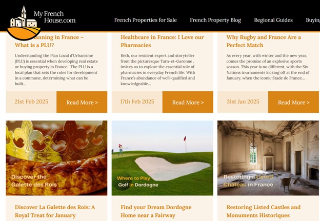 On top of all that, My-French-House.com features its own blog, a rich resource of information about the places and culture of central and southwestern France. It’s been developed over more than 20 years and includes work by other bloggers with expertise in these regions of the country. I’ll be adding my own articles to that collection from time to time in the months ahead, and I commend both the blog and the property-search functions of the site to your consideration.