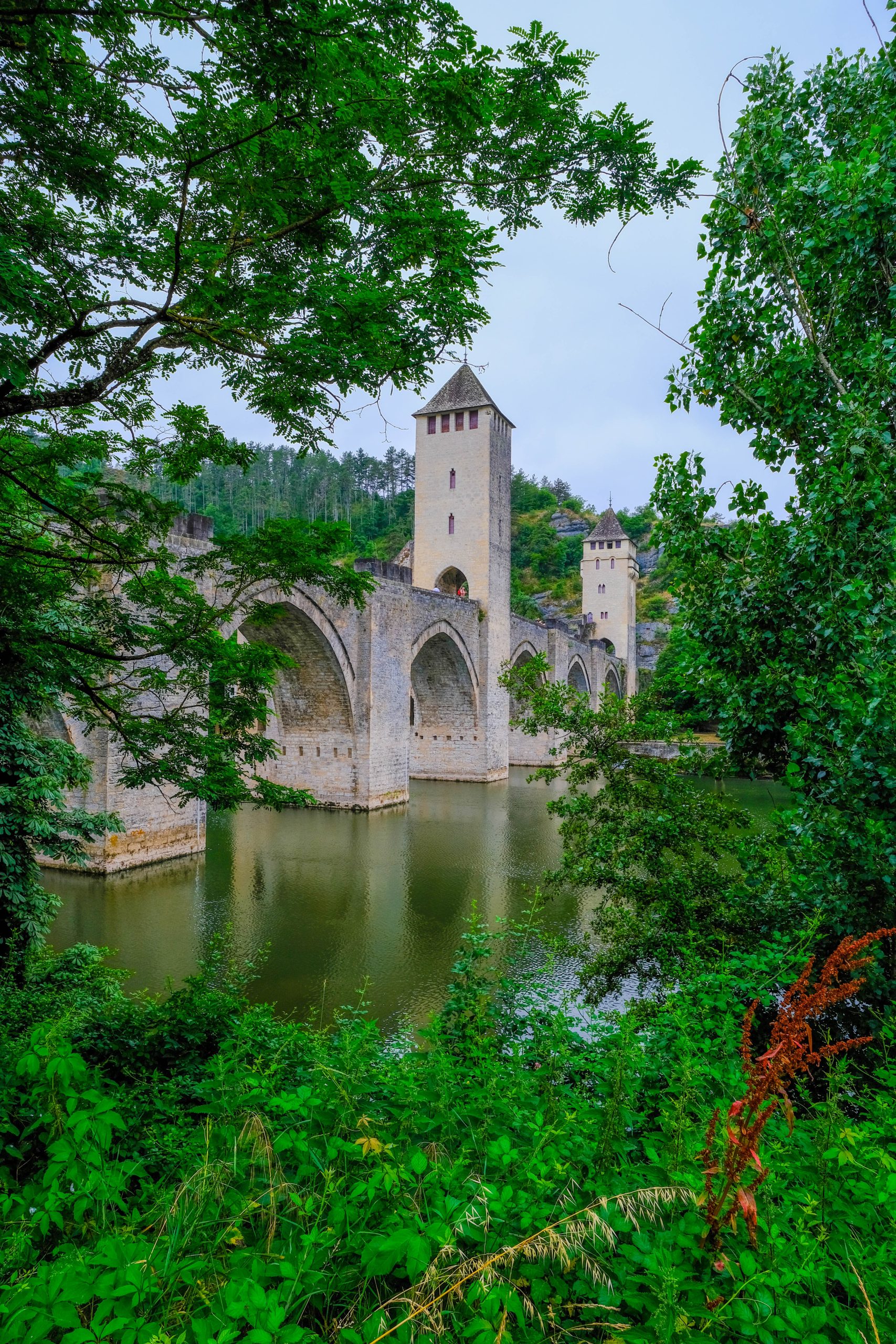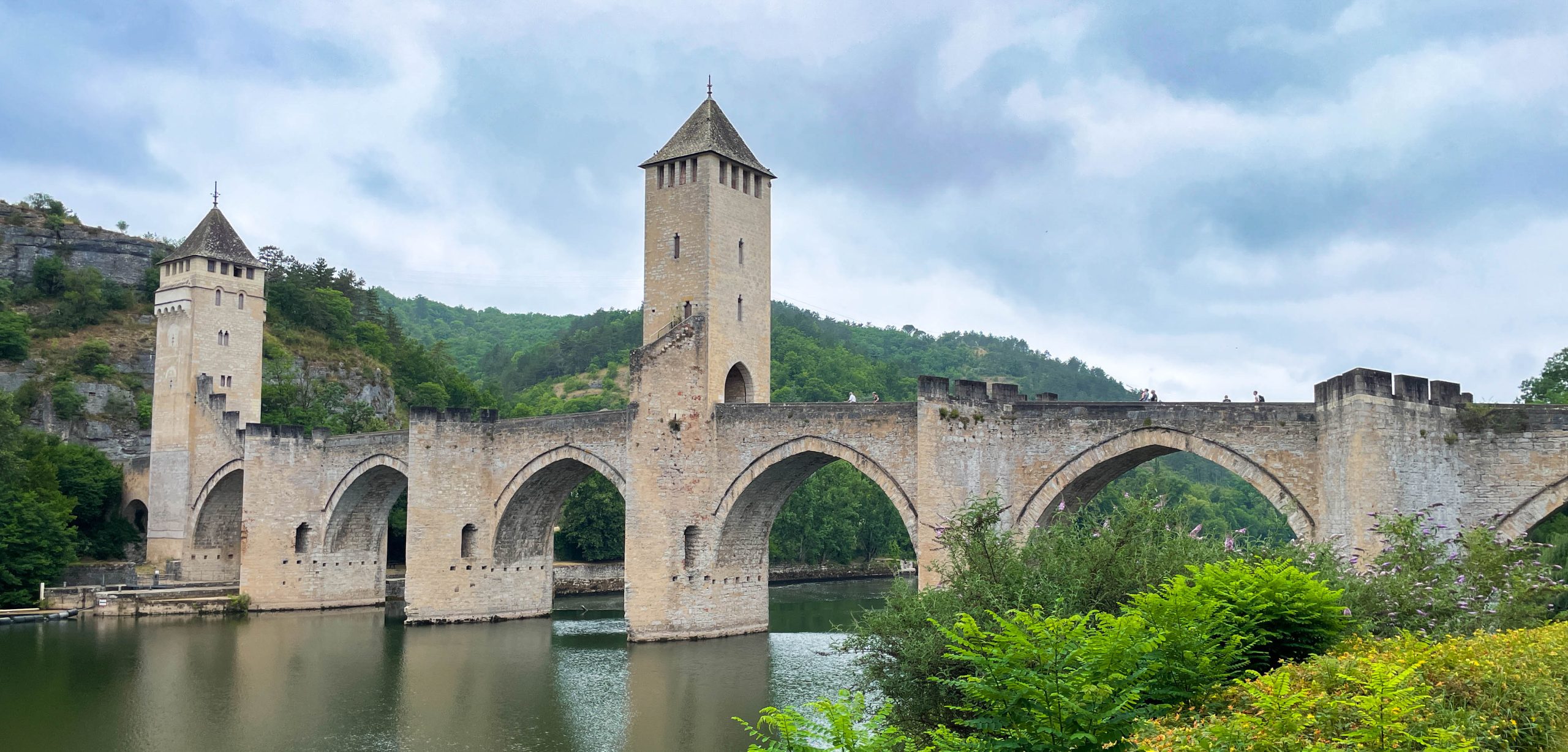 It was a relief to arrive in Cahors after 10 straight days of brutal 95-degree heat. Here the sky was heavy and gray, the temperatures had dropped, and there was even a hint of moisture in the air. I checked into my hotel, the Divona Best Western on the bank of the River Lot…and then I stepped out on the balcony to get my first breathtaking glimpse of the bridge, one of the most famous in Europe.