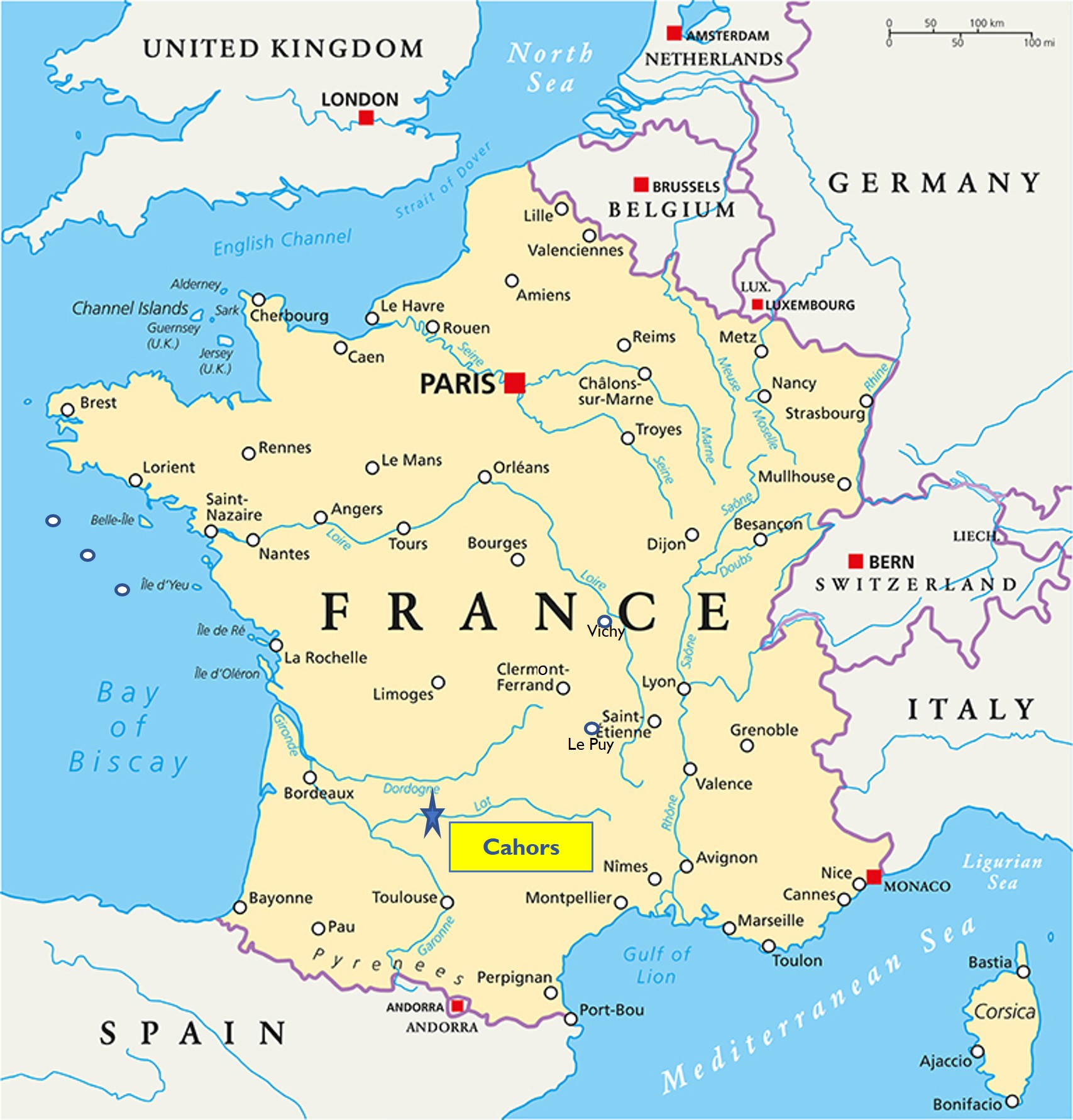 Oh, and there’s one more “diabolical” connection lurking in the history of Cahors. In the 1200s, it was well-known as a center where Christians were willing to charge interest on the money they loaned, even though the practice was strongly condemned by the Catholic church of that era as the sin of usury. For a while at least, the town was known as a center for banking and long-distance trading, using the Lot River to export the region’s signature wines and ship exotic products from the rest of the world further up into central France. Because of the usury, though, calling someone a “Cahorsin” was considered a serious insult, and Dante situated the citizens of Cahors in the same verse alongside the people of Sodom when he put them in the 7th circle of hell in his Divine Comedy!
