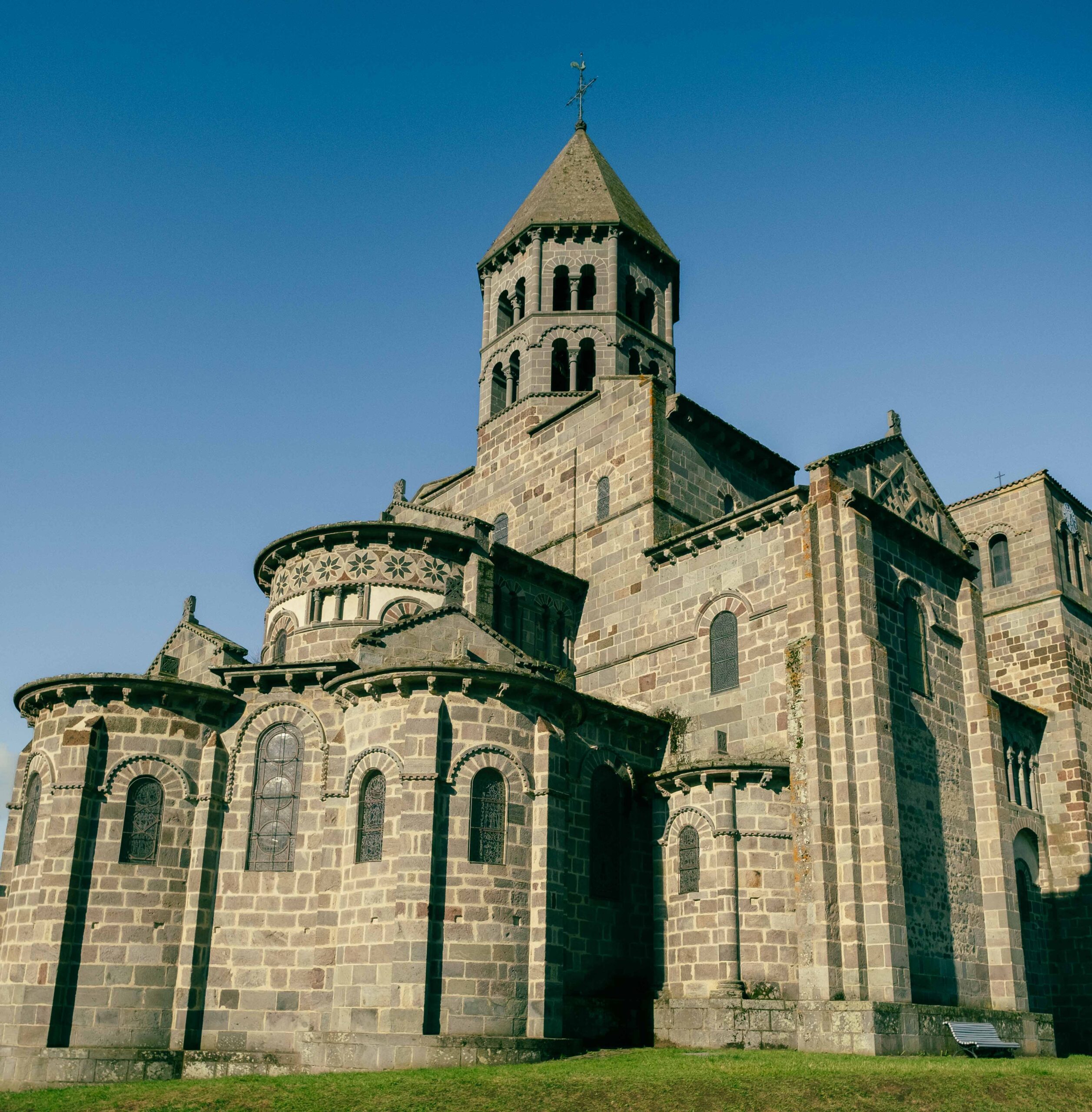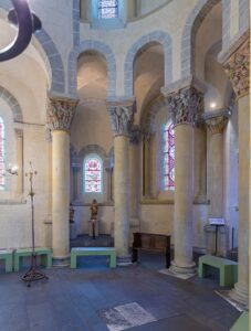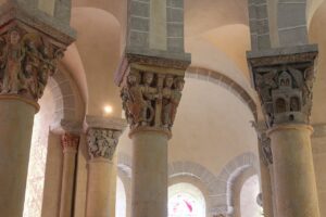 This is a spectacular example of Romanesque art at its highest, with 103 carved capitals at the top of its interior columns, each telling a story from the Bible or from Christian legend. Outside, the barrel shapes of the church’s chapels are topped by chevets in remarkable polychromatic stonework.